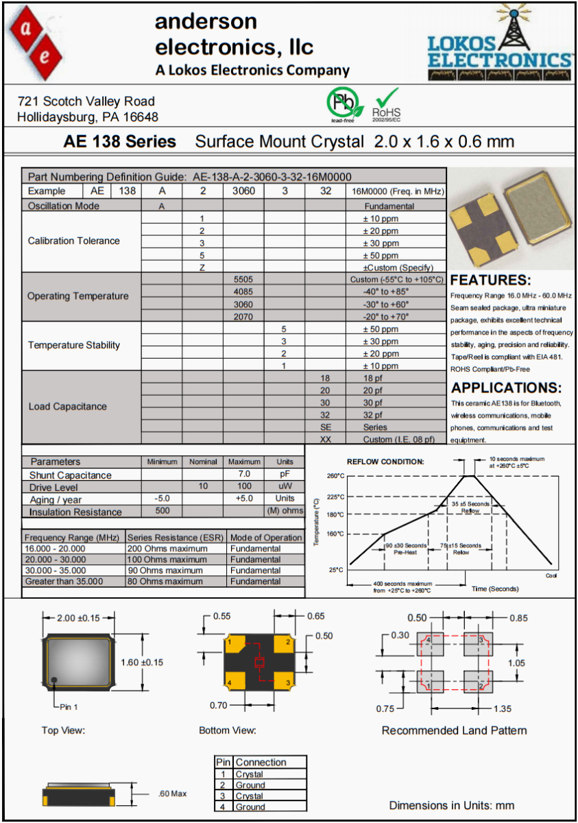 | 案例 | AE138 | A | 2 | 3060 | 3 | 32 | 16M0000 (Freq. in MHz) |