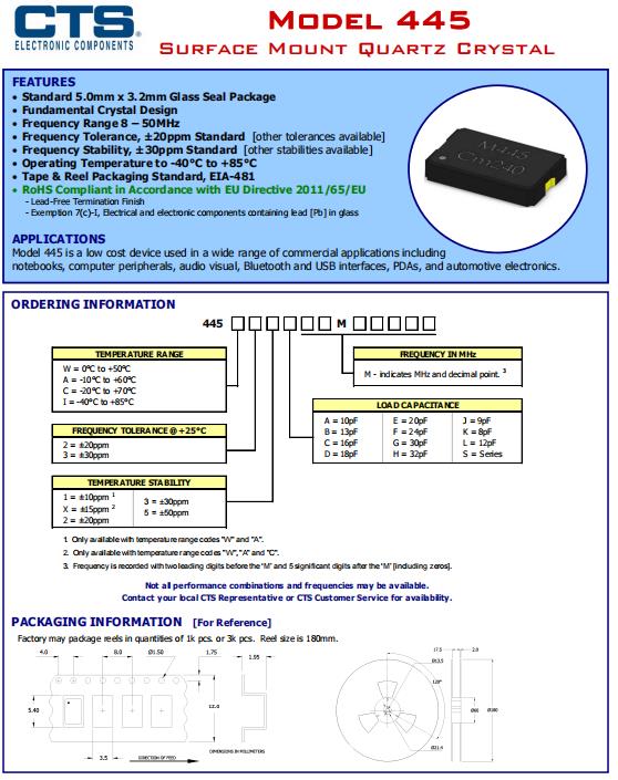 | 445C25D25M00000 | CTS晶振 | 445 | 25MHz | 0.197" L x 0.126" W (5.00mm x 3.20mm) |