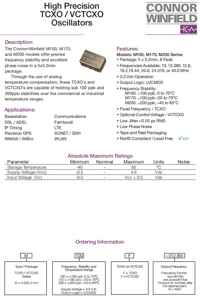 M200F-024.576M,5032mm貼片晶振,6G相關(guān)設(shè)備晶振,美國(guó)康納溫菲爾德晶振,M200石英晶體振蕩器,M200F-024.576M晶振,5032mm貼片晶振,進(jìn)口有源晶振,頻率24.576MHz,電壓3.3V,工作溫度-40~85°C,頻率穩(wěn)定性200ppb,無(wú)鉛環(huán)保晶振,高穩(wěn)定性晶振,6G相關(guān)設(shè)備晶振,網(wǎng)絡(luò)終端晶振,以太網(wǎng)設(shè)備晶振,低端路由器晶振,光終端設(shè)備晶振,SONET/SDH設(shè)備晶振.