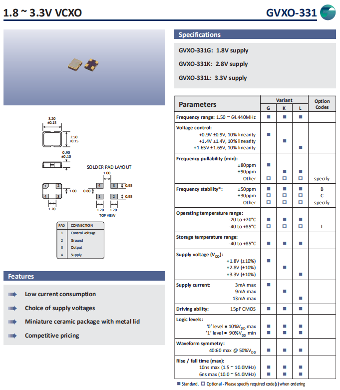 | 型號 | 符號 | GVXO-331 |