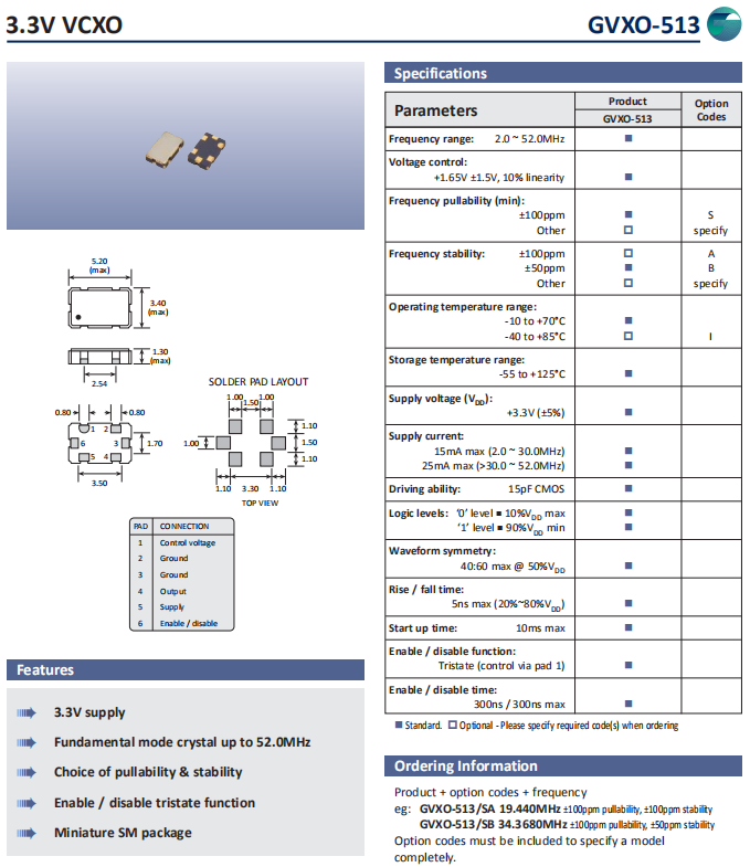 | 型號(hào) | 符號(hào) | GVXO-513 |