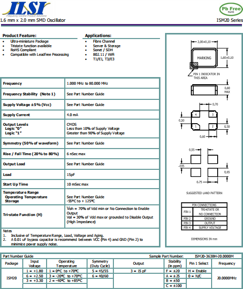 ILSI晶振,ISM20晶振,石英晶體振蕩器.普通石英晶振,外觀完全使用金屬材料封裝的,產(chǎn)品本身采用全自動石英晶體檢測儀,以及跌落,漏氣等苛刻實(shí)驗(yàn).產(chǎn)品本身具有高穩(wěn)定性,高可靠性的石英晶體振蕩器,焊接方面支持表面貼裝,外觀采用金屬封裝,具有充分的密封性能,晶振本身能確保其高可靠性,采用編帶包裝,可對應(yīng)產(chǎn)品應(yīng)用到自動貼片機(jī)告訴安裝,滿足無鉛焊接的高溫回流溫度曲線要求.