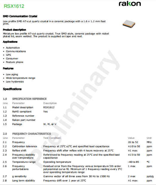 | Rakon晶振 | 單位 | RSX1612晶振 | 石英晶振基本條件 |