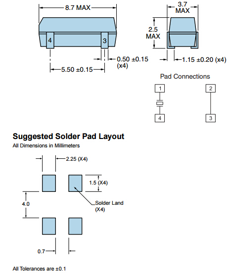 | Shunt Capacitance (C0) | 0.85pF Typical, 2pF Maximum |