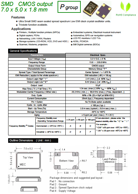 MERCURY晶振,MERCURY晶體振蕩器,HM572P有源晶體.石英晶體振蕩器在設計時就與各款型號IC匹配等相關技術,使用IC與晶片設計匹配技術:是高頻振蕩器研發及生產過程必須要解決的技術難題.在設計過程中除了要考慮石英晶體諧振器具有的電性外,還有石英晶體振蕩器的電極設計等有它的特殊性,必須考慮振蕩器的供應電壓,起動電壓和產品上升時間,下降時間等相關參數.