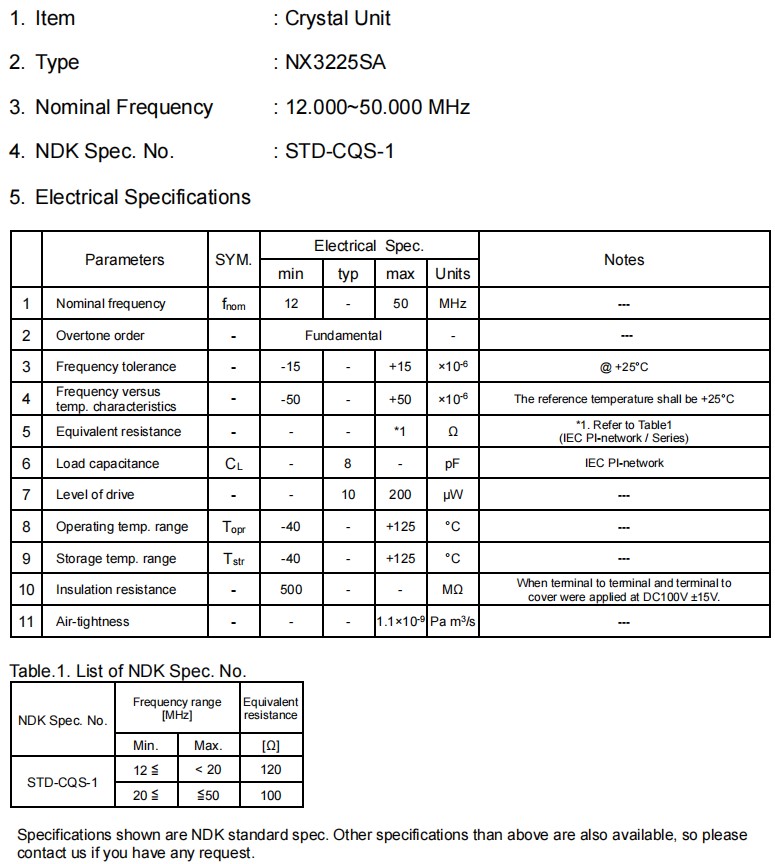 4-SMD,NX3225SA-25.000M-STD-CSR-3,25MHz,8pF,±15ppm,3225mm諧振器,參數(shù)表
