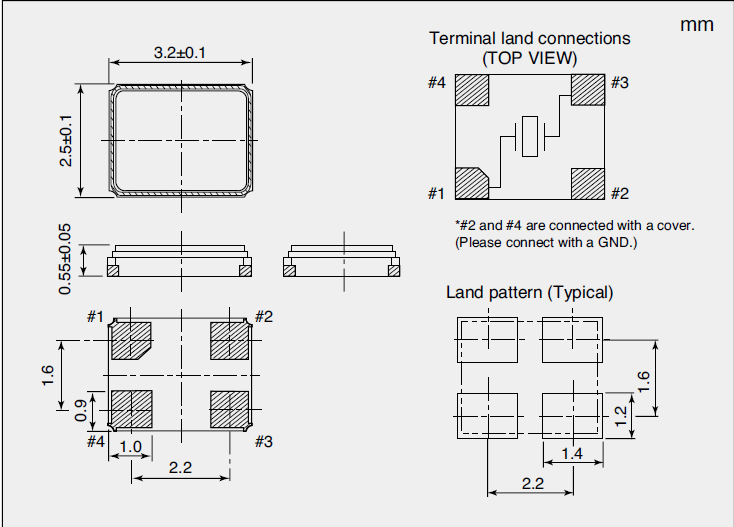 4-SMD,NX3225SA-25.000M-STD-CSR-3,25MHz,8pF,±15ppm,3225mm諧振器 尺寸圖