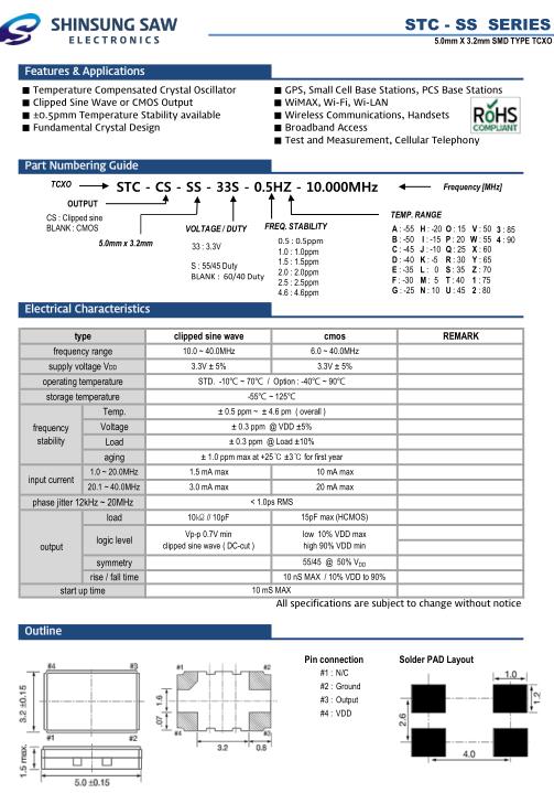 SHINSUNG晶振,STC-SS貼片晶體,STC-CS-SS-33S-0.5HZ-20.000MHz溫補振蕩器,5032mm體積的石英晶體振蕩器,有源晶振,該產(chǎn)品可驅(qū)動2.5V的溫補晶振,壓控晶振,VC-TCXO晶體振蕩器產(chǎn)品,電源電壓的低電耗型,編帶包裝方式,可對應(yīng)自動高速貼片機自動焊接,及IR回流焊接(無鉛對應(yīng)),為無鉛產(chǎn)品,超小型,質(zhì)地輕.產(chǎn)品被廣泛應(yīng)用到集成電路,程控交換系統(tǒng),無線發(fā)射基站.