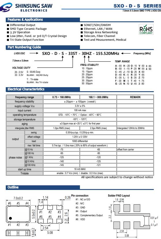 SHINSUNG晶振,SXO-D-S醫(yī)療晶振,SXO-D-S-33ST-25HZ-24.000MHz晶振,小型SMD有源晶振,從最初超大體積到現(xiàn)在的7050mm,6035mm,5032mm,3225mm,2520mm體積,有著翻天覆地的改變,體積的變小也使產(chǎn)品帶來(lái)了更高的穩(wěn)定性能,接縫密封石英晶體振蕩器,精度高,覆蓋頻率范圍寬的特點(diǎn),SMD高速自動(dòng)安裝和高溫回流焊設(shè)計(jì),Optionable待機(jī)輸出三態(tài)輸出功能,電源電壓范圍:1.8V~5V,高穩(wěn)定性,低抖動(dòng),低功耗,主要應(yīng)用領(lǐng)域:無(wú)線通訊,高端智能手機(jī),平板筆記本W(wǎng)LAN,藍(lán)牙,數(shù)碼相機(jī),DSL和其他IT產(chǎn)品的晶振應(yīng)用,三態(tài)功能,PC和LCDM等高端數(shù)碼領(lǐng)域,符合RoHS/無(wú)鉛.