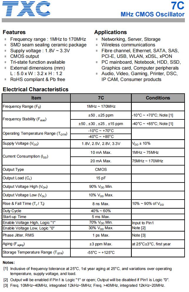 | 7C24020001 | TXC晶振 | 7C | XO (Standard) | 24MHz | ±30ppm | -20°C ~ 70°C |
