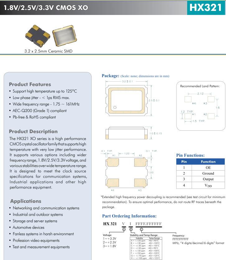 更多>>Diodes編碼HX321VI16.000000很適合應用于惡劣環(huán)境下無風扇系統,CEERA晶振