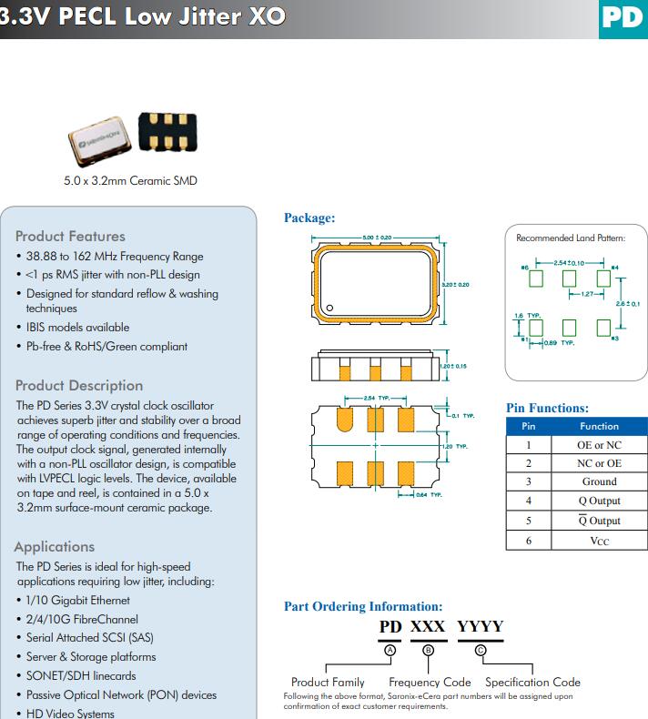 PD系列是理想的高速要求低抖動的應(yīng)用,包括: