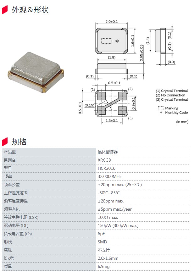 | XRCGB32M000F1H03R0 | HCR2016 | 32.0000MHz | ±10ppm max. (25±3℃) | 消費(fèi)級(jí) |