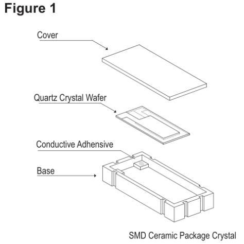 石英晶體單元包括一小條石英帶或一盤石英,根據(jù)用戶指定的諧振頻率,將其加工成確切的尺寸和厚度。石英鍍有導(dǎo)電電極,并安裝在密封的保護(hù)罩中(見圖1)。