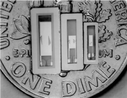 Figure 1: Three-size AT-strip resonator. From left to right: CX-1, CX-3 and CX-4.