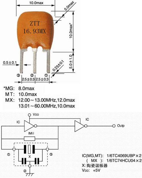 生產的陶瓷諧振器 ZTT系列是在原有的ZTA晶振內部添加了內置負載電容,引線腳于原來的二腳演變成三腳直插式,這樣一來減去了外部線路設計時可以省去電容部分,大大減少了線路空間,且可減少元器件的數量,增加穩定性,減小尺寸,為電路設計者們提供了非常的方便,并且外形尺寸也沒有太大的改變。此規格的頻率范圍在 2.0 MHz 至 60.00 MHz,頻率公差為 ±0.5%,±0.3%。