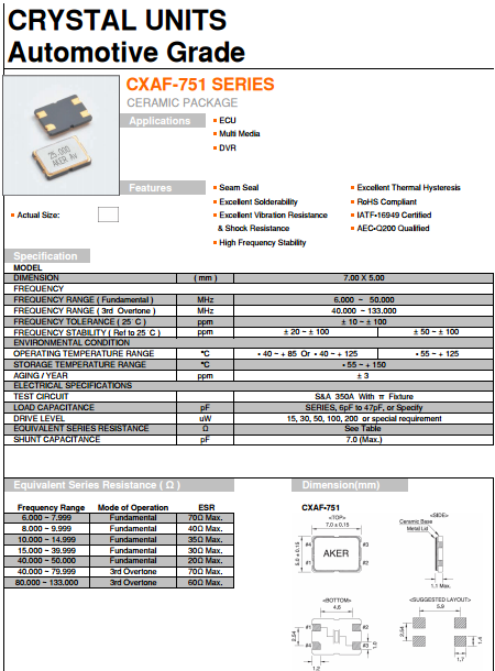 AKER晶振,CXA-016000-7B6A60晶振,CXAF-751石英晶振.晶體內部石英晶片均采用了全自動壓電石英晶片清洗技術,采用高壓噴淋清洗,兆聲振動的原理,一個全自動,清洗過程由PLC控制,由傳輸裝置,噴淋清洗段,噴淋漂洗段,風力吹水段等, 操作自動化程度高,除上下工件需要人工外,其余全部由設備自動完成.根據(jù)需要,對速度,溫度,時間等參數(shù)進行調整,使之最大限度的滿足工藝需要.能最大限度除去晶片污染物,并防止人工污染.