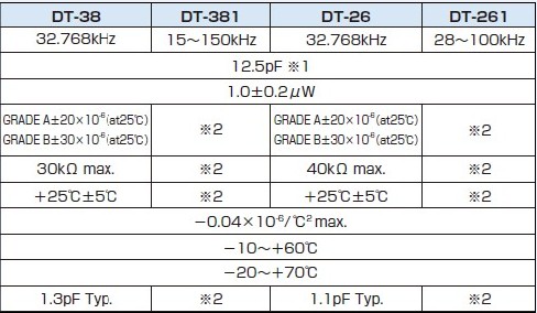 小型?薄型、輕型的表面貼片音叉型晶體諧振器、具有優良的耐熱性、耐環境特性、可發揮優良的電氣特性、符合RoHS規定,滿足無鉛焊接的回流溫度曲線要求、金屬外殼的使用使得產品在封裝時能發揮比陶瓷外殼更好的耐沖擊性...