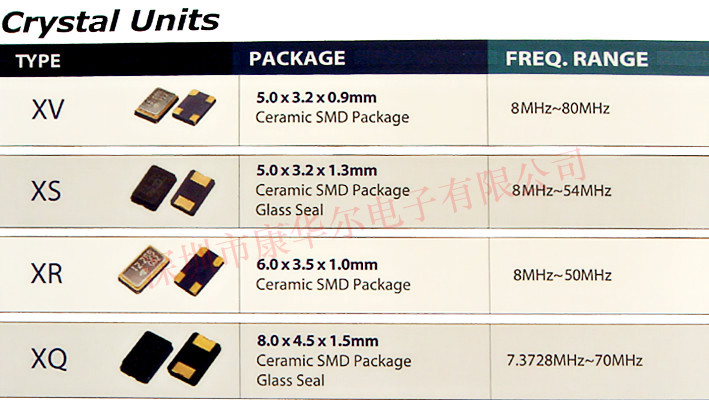 | 石英晶振目錄表 | 泰藝石英晶體諧振器 XR | ||||