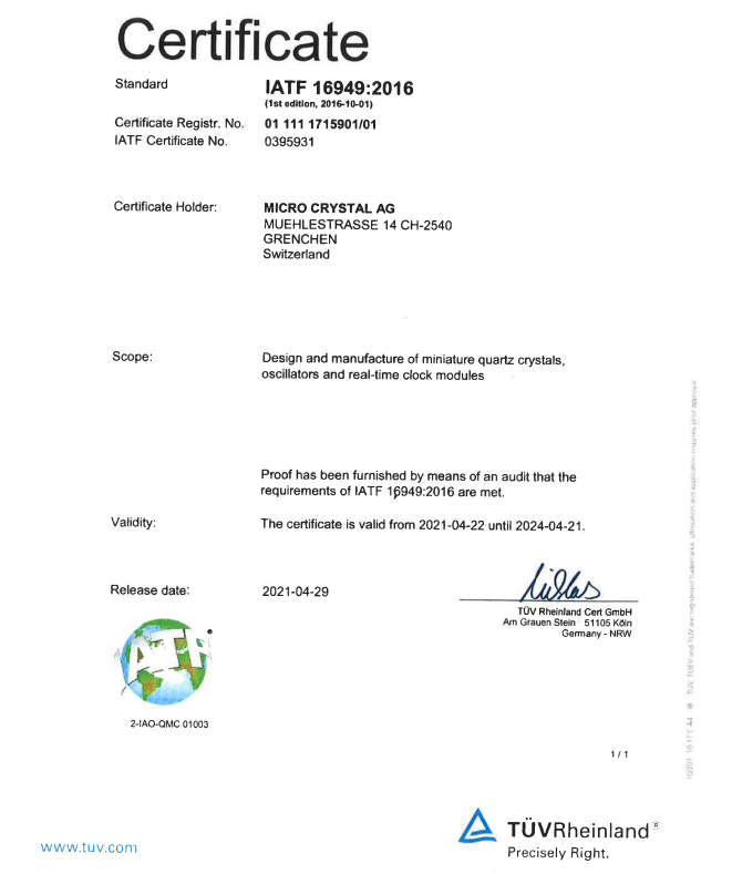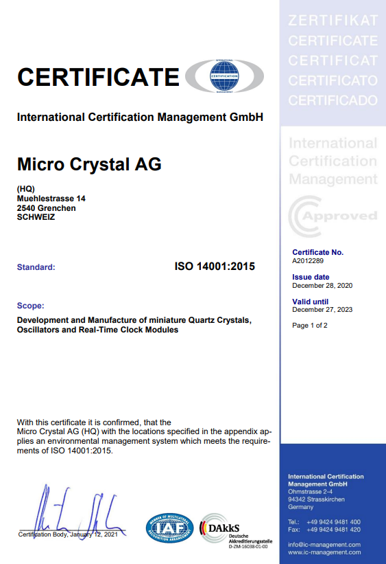 瑞士微晶晶振按照IS014001標準的要求,建立環境管理體系,并在環境目標和方案設定之后追求持續的環境改善.