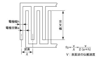 圖一 SAW濾波器的基本結(jié)構(gòu)(橫向型) 圖二 叉指式換能器的基本結(jié)構(gòu)(橫向型)